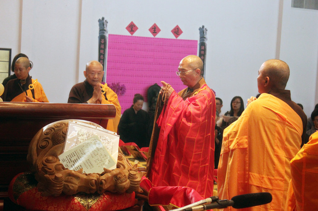 德州佛教會會長海長老於27日結懺時蒞臨壇場開示與會大眾:他因為年齡體力的關係不能久站,不能長跪,無法全程參加拜懺儀式,因此勉勵大家「修行」 要趁早! 宏意法師接者開示: 修行要趁早,修行隨時可行,也向現場全程參與拜懺的常住法師,護持的義工和各發心功德主表示感謝之意!