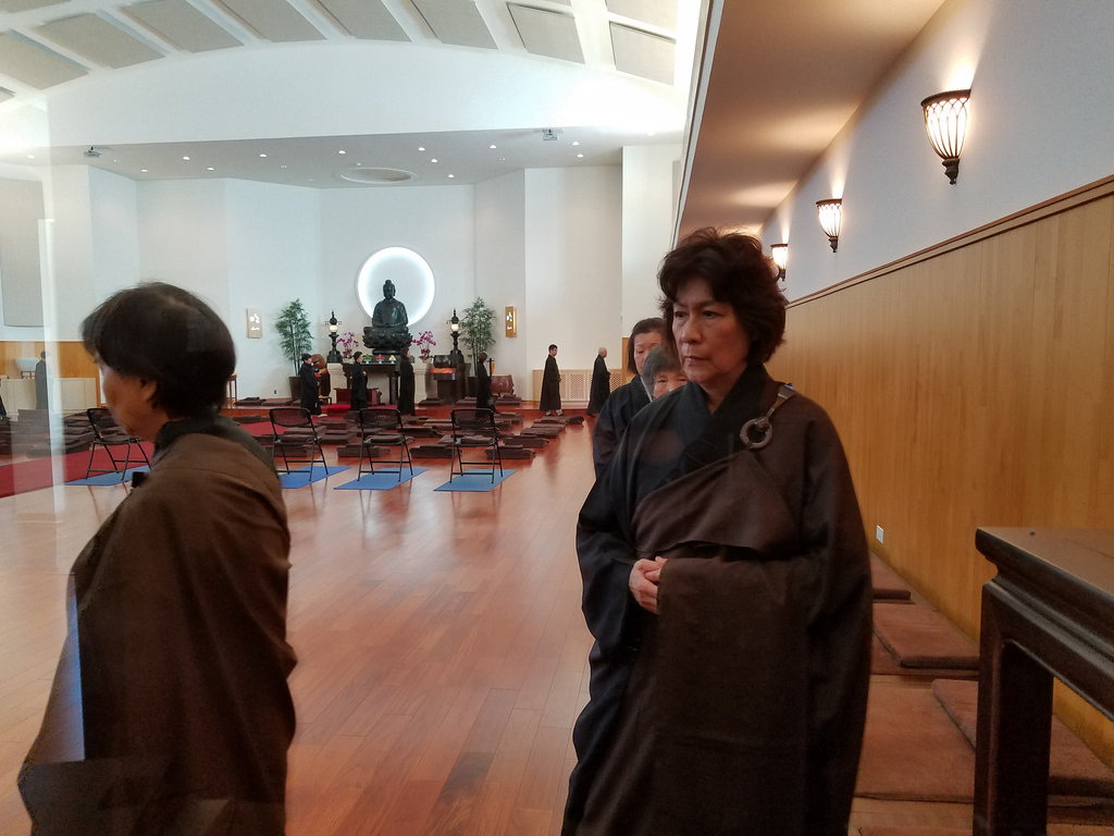 最後一天早上宏師父帶領大家,由明心堂出發經靜思禪道步行念佛,轉菩提南路至成佛大道雙獅石像處,再三步一問訊朝山。結七午齋後,籌備單位在香雲堂舉行座談會,約40多人參加。席間大眾分享七天來打佛七的心得和建議。有人感念法師帶著大家念佛的辛苦要把佛法用在日常生活上,有人談到七天念佛的受用和佛法感應的不可思議,有人感嘆七天時間太短希望能舉辦更長的念佛,更有人讚嘆菩提中心的殊勝環境和法師願力。結論時,宏師父說到有會有離,有聚有散,是世間常法,但今日我們歡喜相聚,也是歡喜分離。念佛七天應該止語,利用時間思維佛法,今日結七後回家,請大家仍然保持念佛的習慣。
