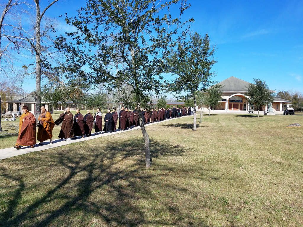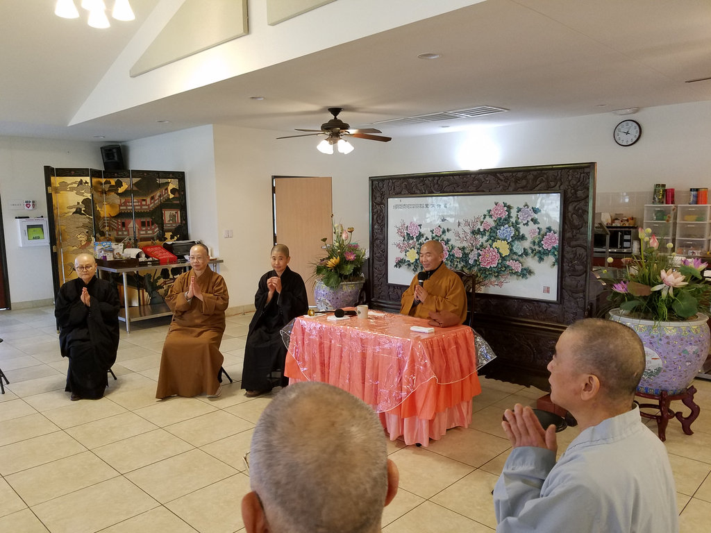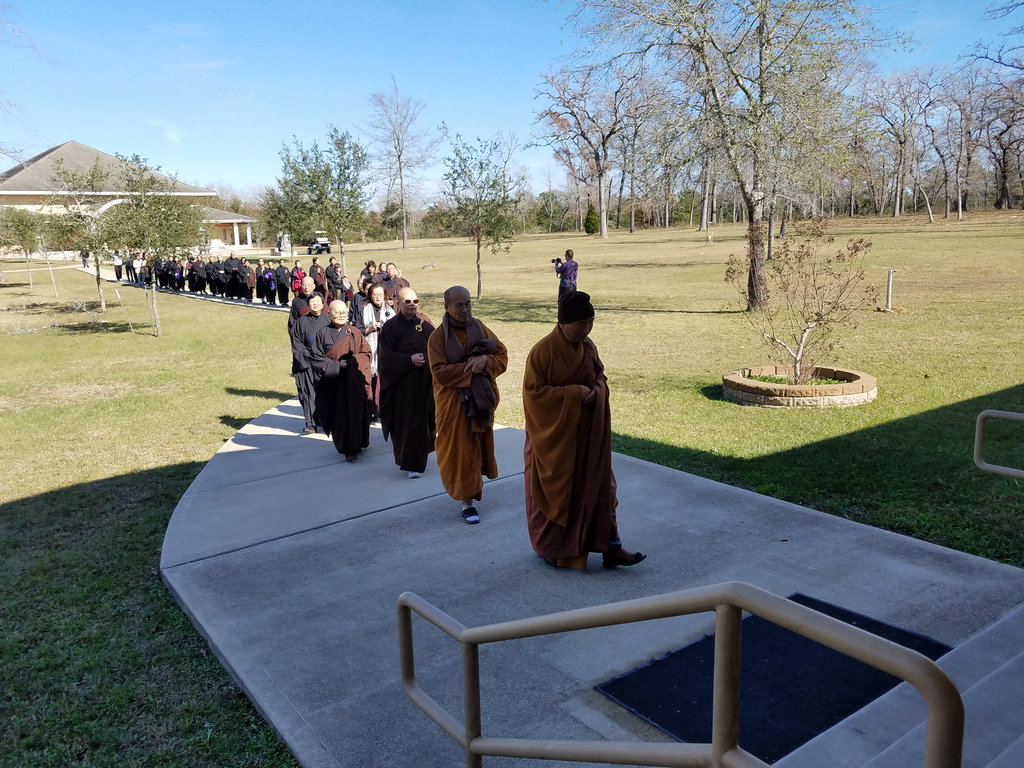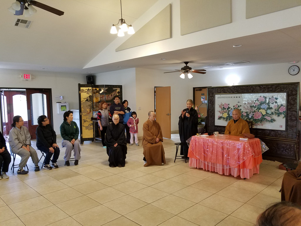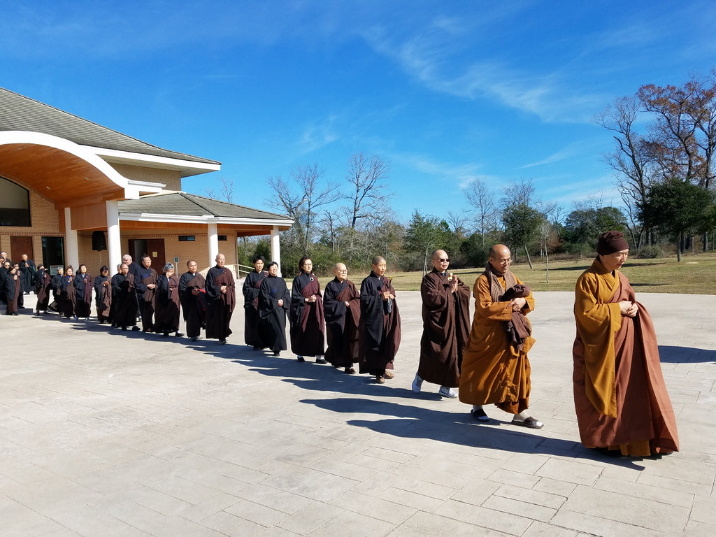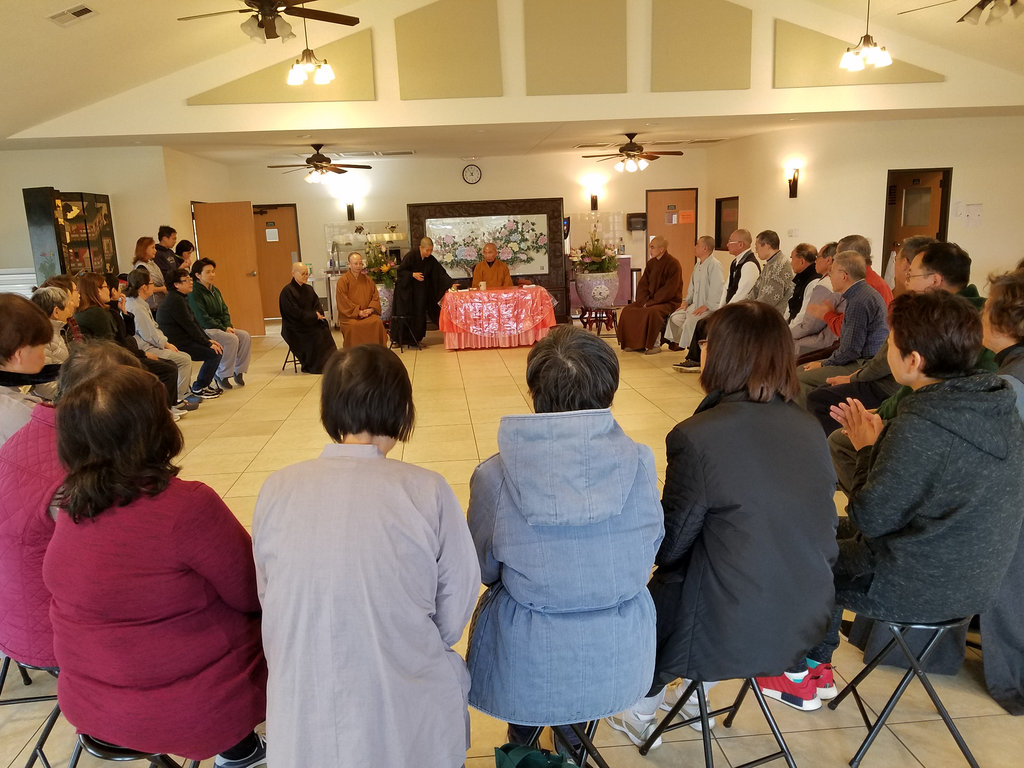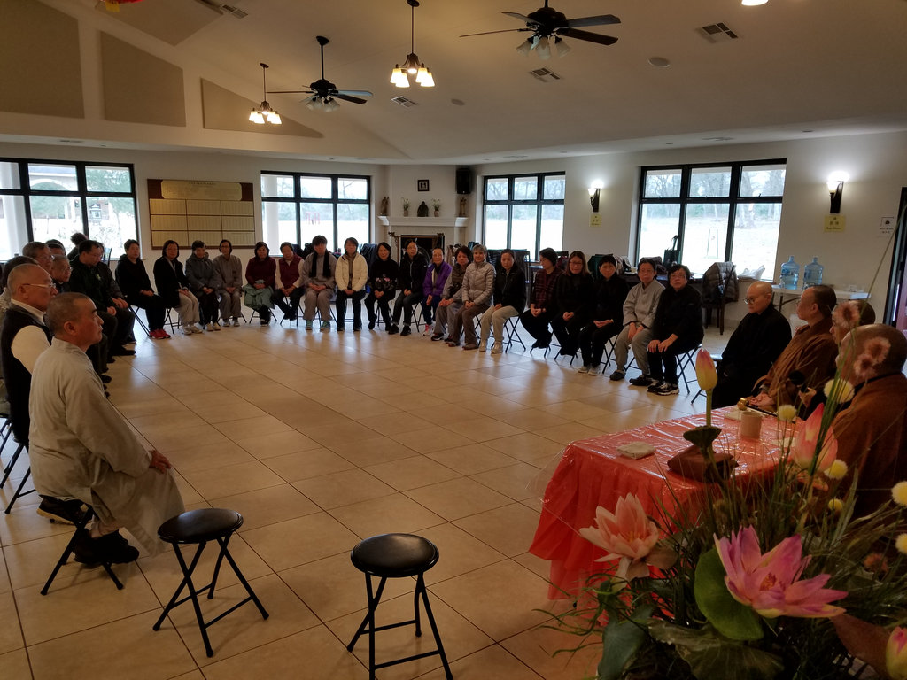 德州佛教會於2017年12月25日(星期一)至12月31日(星期日),假美洲菩提中心明心堂舉辦《歲末感恩佛七》,已於日前圓滿。這次佛七由本會副會長上宏下意法師主七,全程禁語,攝心念佛。出家師父有六位法師支援。參加佛七的學員則約有70多名,除了休士頓本地的信眾之外,也有來自加州,佛羅里達州,俄亥俄州,奧勒岡州,華盛頓DC和馬里蘭州等地的居士。
