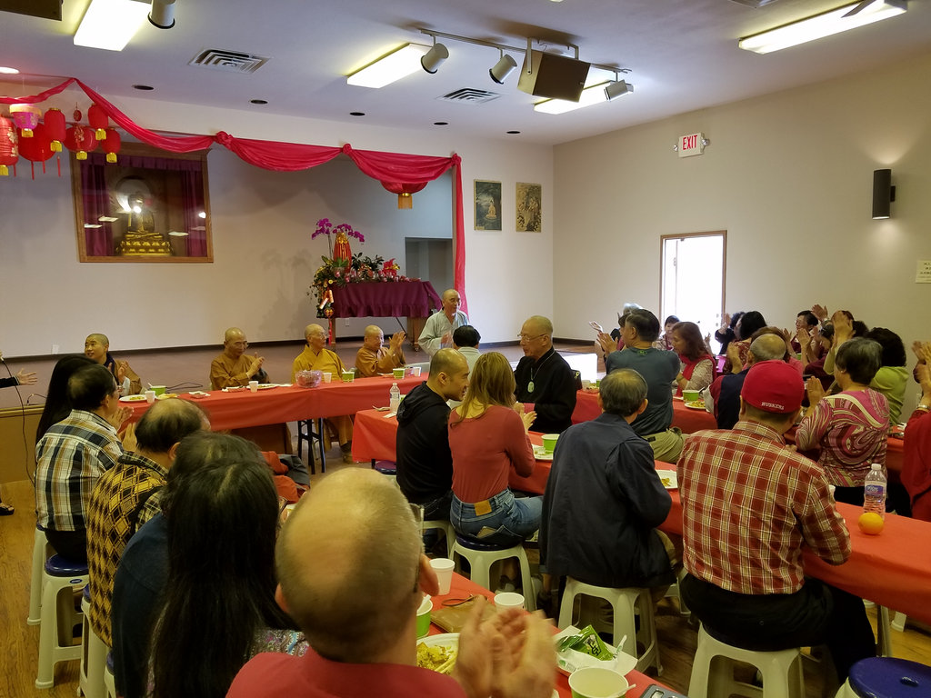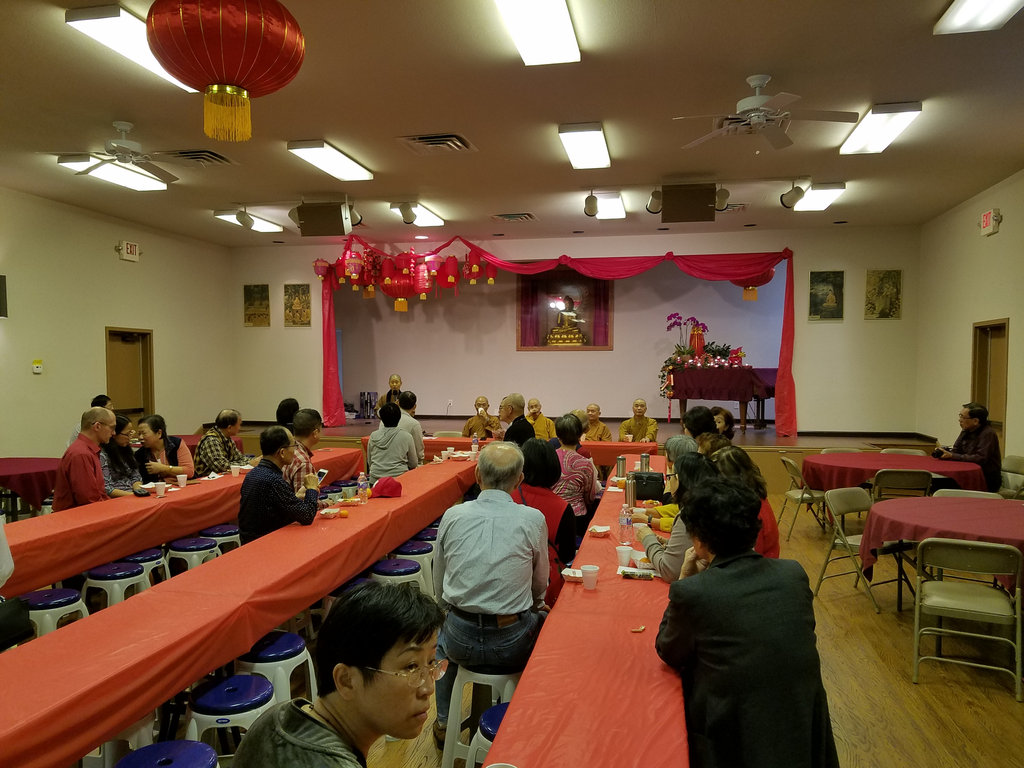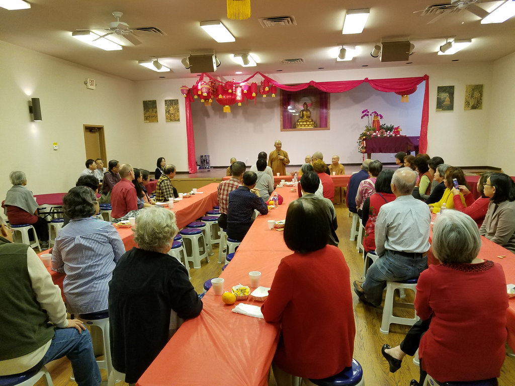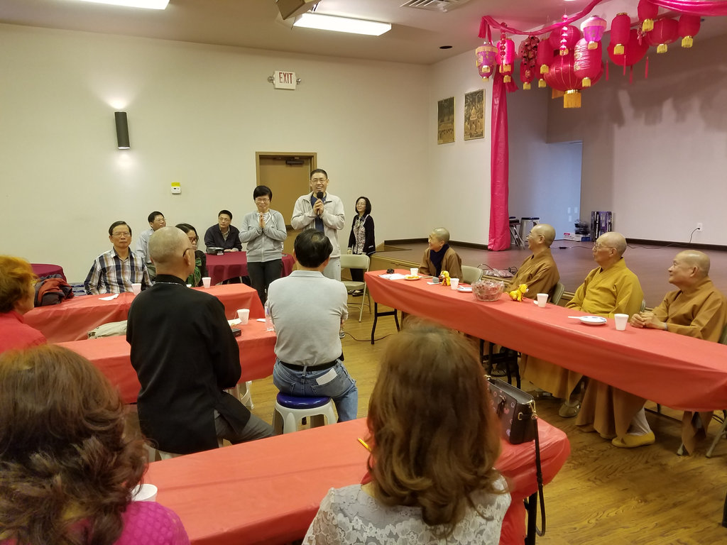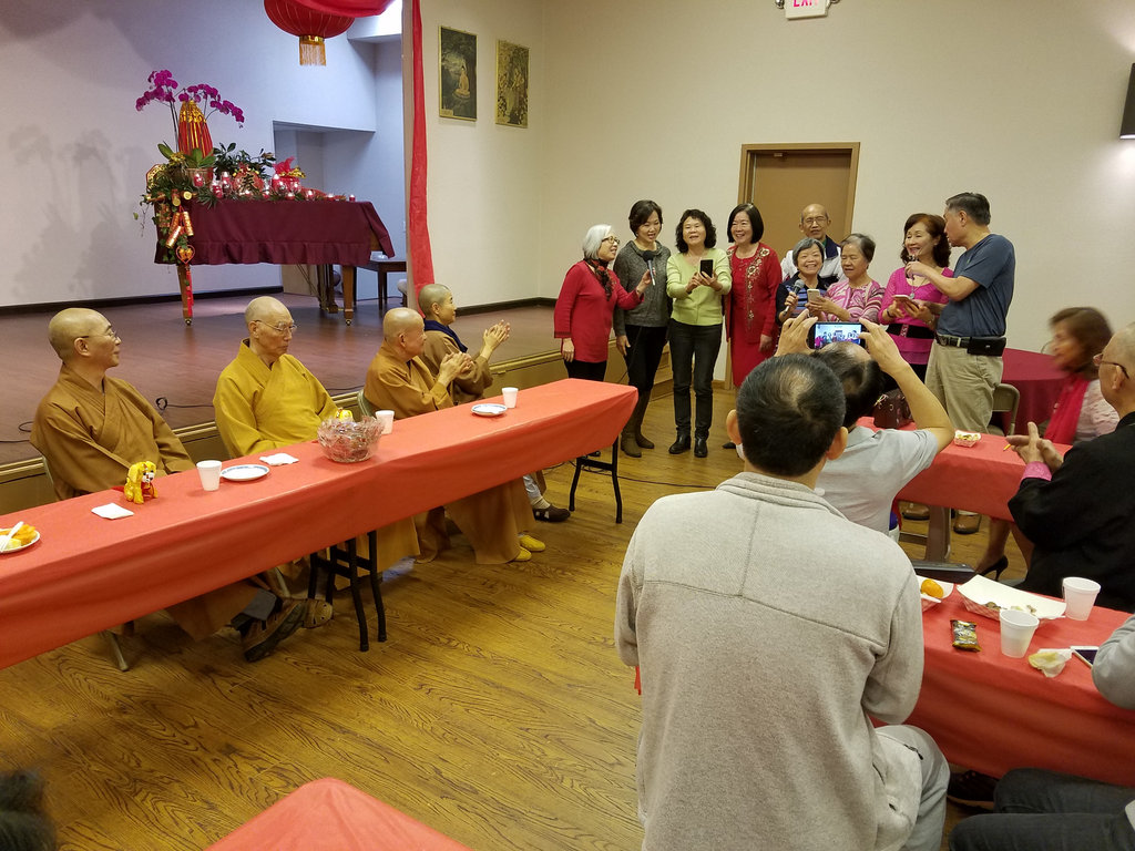 2018年 歡喜融合茶話會 02/18/2018 管理員 大法會 0 十七日「歡喜融合茶話會」於上午十時在玉佛寺青年活動中心舉行,由宏意法師帶領常住法師和大家輕鬆茶話家常。會中除了簡單可口的茶點之外,參加的會友也談談當義工的感想並且自動自發的表演才藝節目。 宏意法師先說了個「年」的民間故事,輕鬆氣氛,再以珍惜因緣,善用因緣和創造因緣三件事來勉勵大家。期望能「若逢知己宜依份,若遇冤家也共和」。最後法師以一則老和尚種花的故事,期勉大家在生活上遇到不如意的事情時,要不忘初心和盡量保持喜樂的心情。 新春玉佛寺