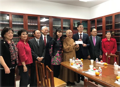 德州佛教會於2月18日上午邀請駐休士頓台北經濟文化辦事處陳家彥處長參加本會在玉佛寺舉辦之新春祈福法會,會後並捐贈5,000美元善款予花蓮地震賑災及災後重建,陳家彥處長代表中華民國(台灣)政府接受。