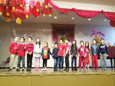 本會菩提學苑中文學校於2月25日上午9:30,於玉佛寺大雄寶殿舉行全校師生和家長的新年團拜活動。