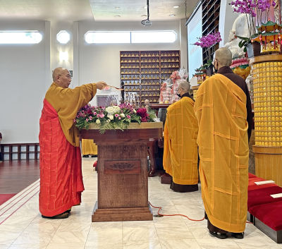 欣逢本師釋迦牟尼佛聖誕,德州佛教會於五月八日上午十點,假玉佛寺大雄寶殿舉行浴佛法會。本會會長宏意師父帶領常住僧衆諷誦《心經》為大衆祈福,以《佛教給現代人的啟示》為題開示大衆。